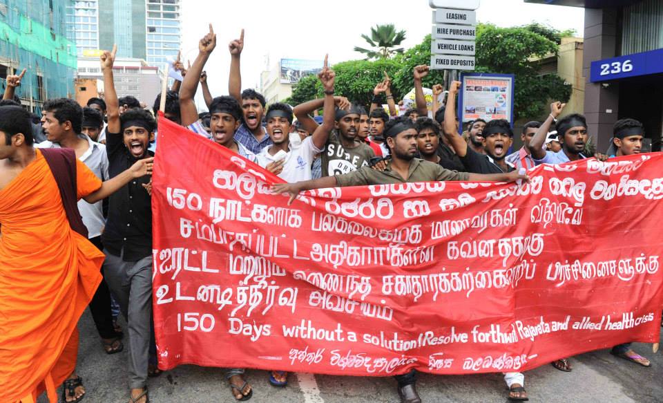 சுகாதார கற்கை நெறிக்கான காலத்தினை குறைத்தமைக்கு எதிராக கடந்த 150 நாட்களாக ரஜரட்டை பல்கலைக்கழக மாணவர்கள் தொடர்ச்சியாக போராடிக் கொண்டிருக்கின்றனர். இவர்களின் போராட்டத்திற்கு ஆதரவு தெரிவித்து இன்று கொழுப்பில் ஆர்ப்பாட்டம் ஒன்றினை அனைத்து பல்கலக்கழக மாணவர் ஒன்றியம் ஒழுங்கு செய்திருந்தது. பொலிசாரால் இதற்கு அனுமதி மறுக்கப்பட்டது. பின்பு நீதிமன்றத்தால் கோட்டை புகையிரத நிலையத்தின் முன்னால் மட்டுமே நடத்தலாம் என அனுமதி அளிக்கப்பட்டது.